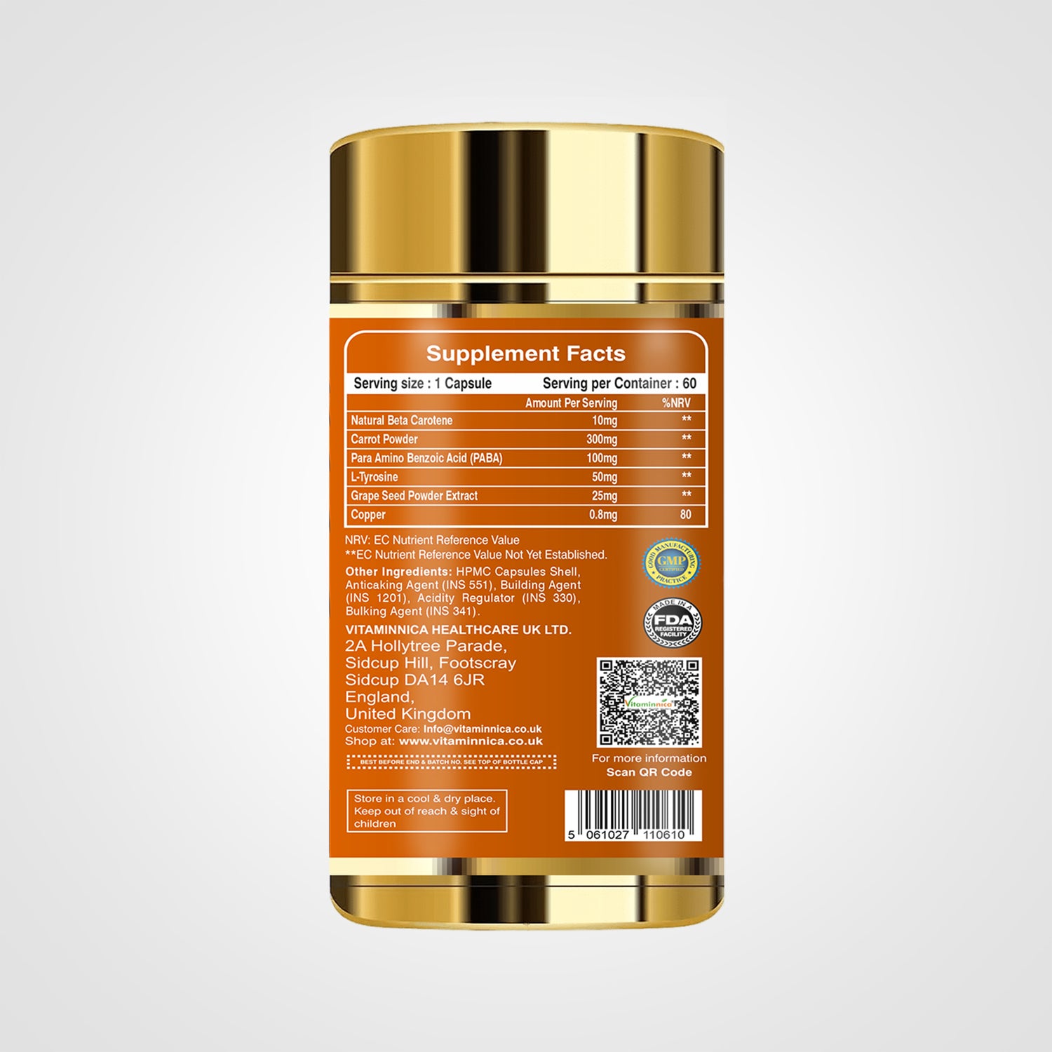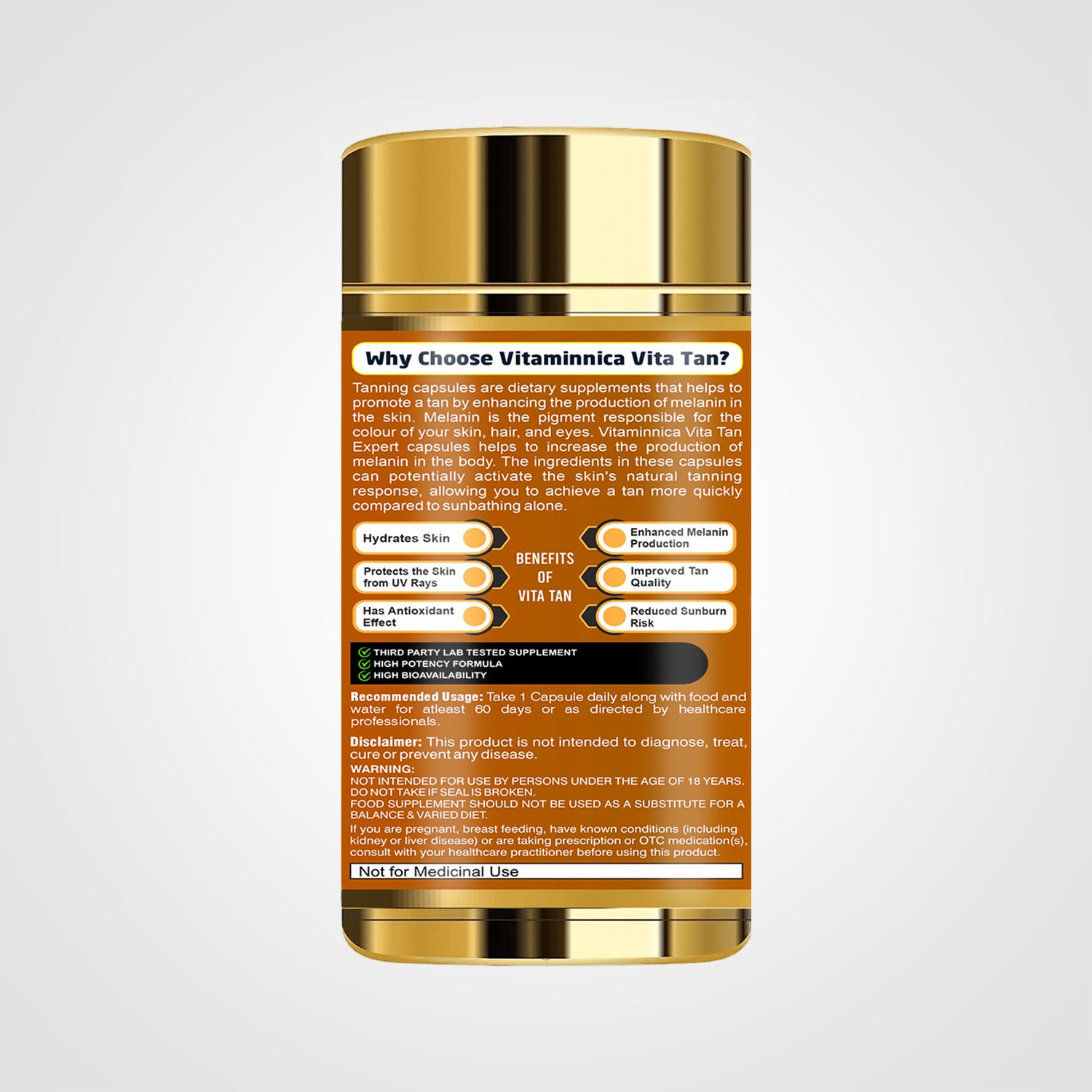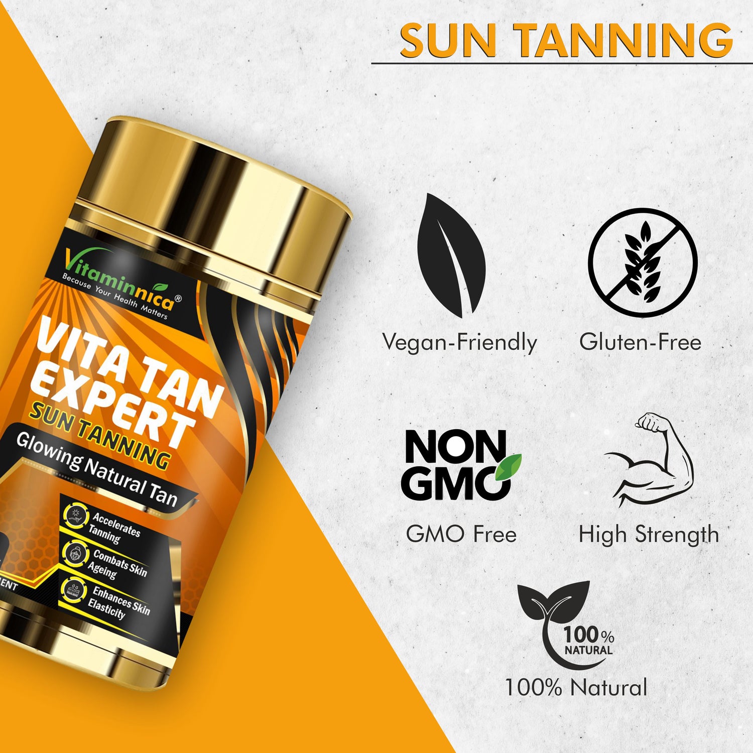 Vitaminnica Vita Tan Expert- Tanning Accelerator- 60 Vegan Capsules | Natural Sun Protector with Beta Carotene