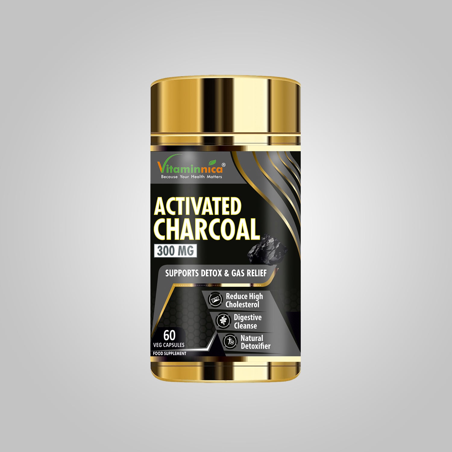 Vitaminnica Activated Charcoal 300mg- Supports Detox & Gas Relief- 60 Capsules