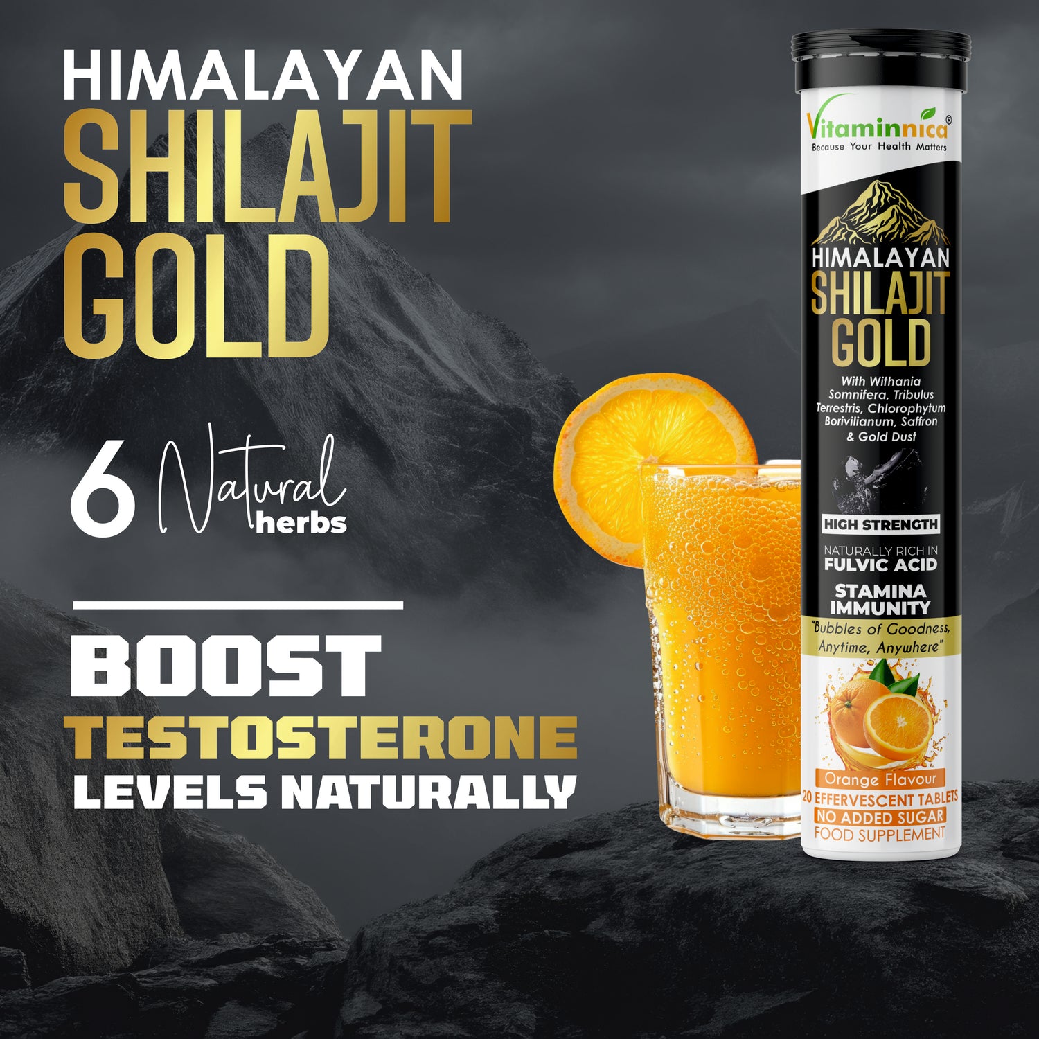 Vitaminnica Shilajit Gold- 20 Effervescent Tablets - Orange is backordered and will ship as soon as it is back in stock.