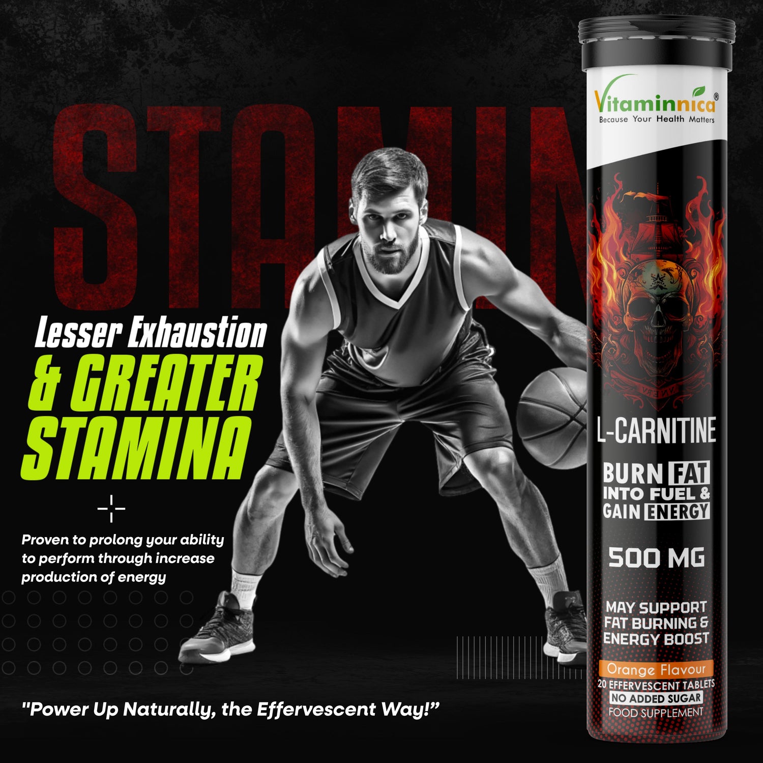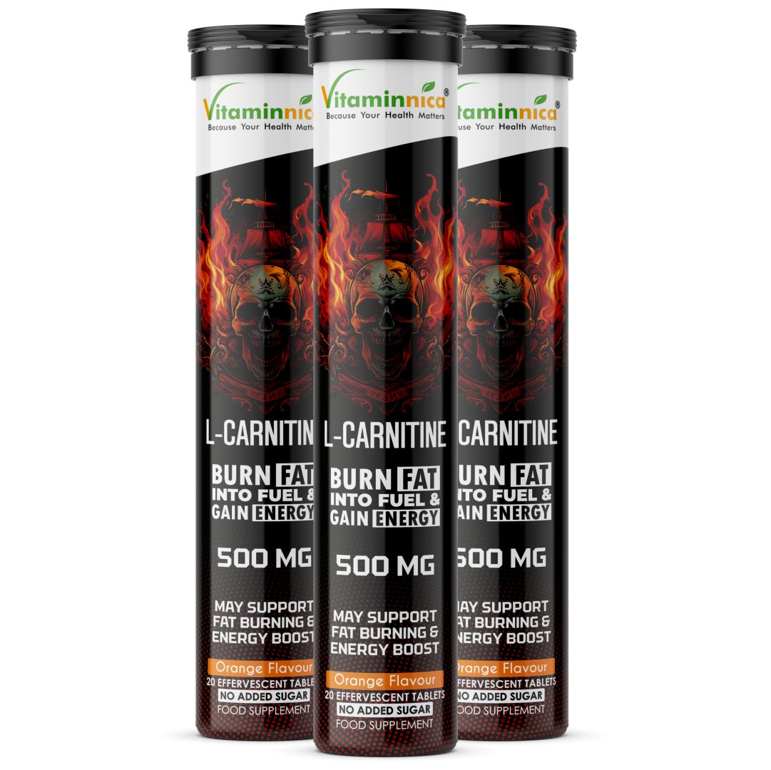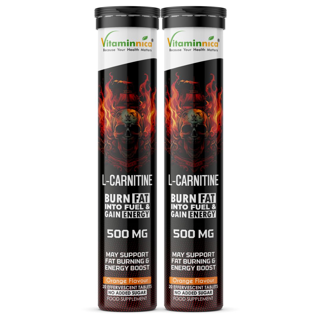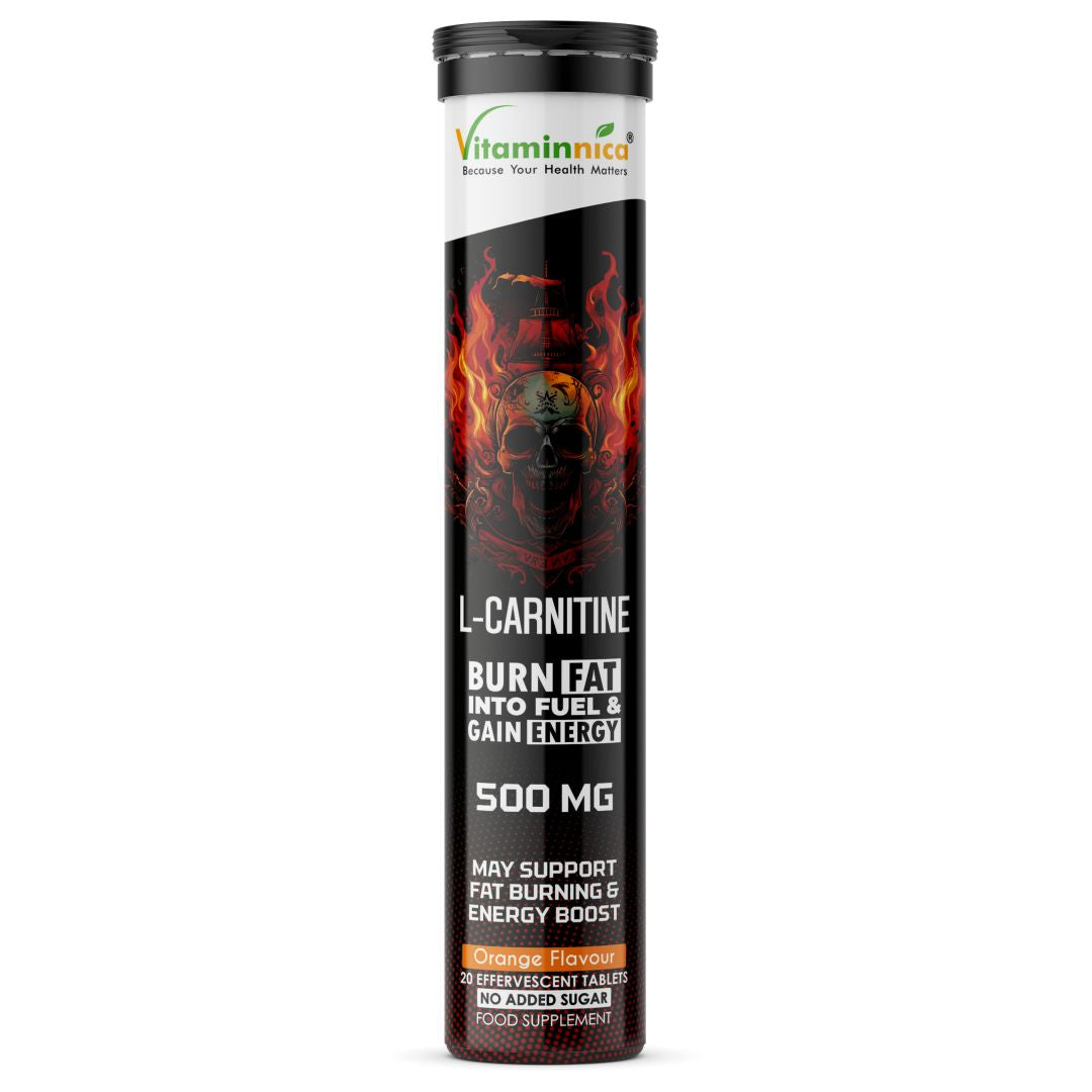 Vitaminnica L-Carnitine- 20 Effervescent Tablets Orange Flavour – Fat Metabolism, Energy & Weight Management Support | Fast-Absorbing Metabolic Drink