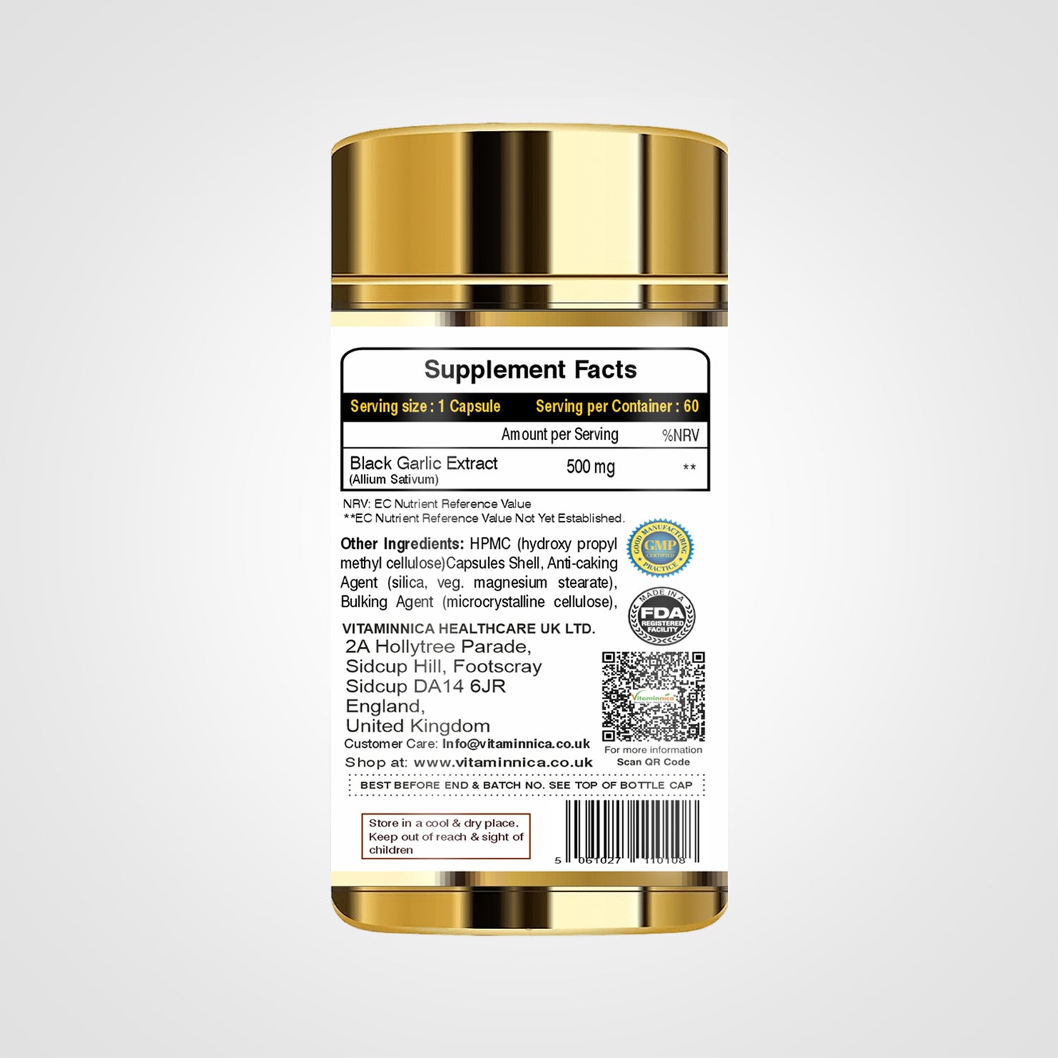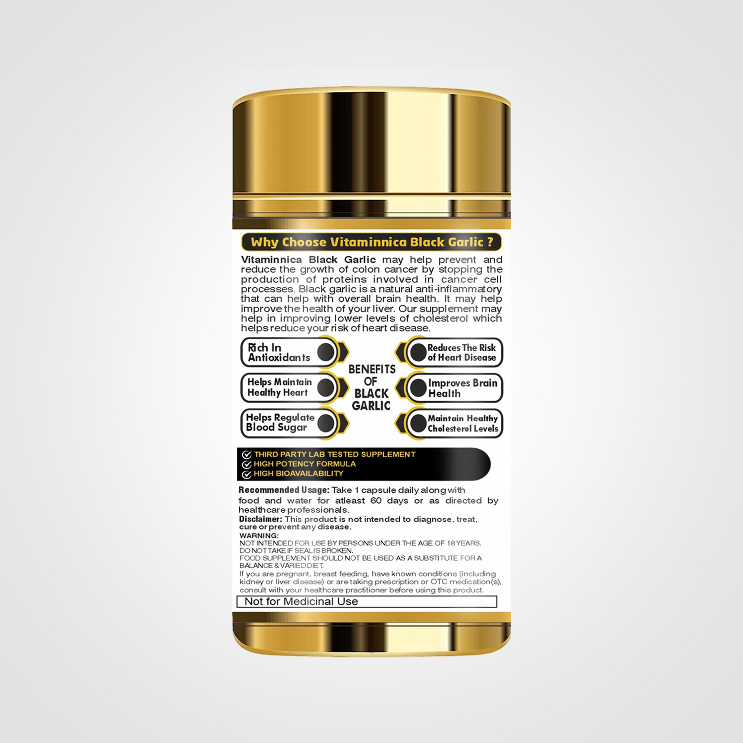 Vitaminnica Black Garlic - Better Immunity & Heart Health -60 Capsules
