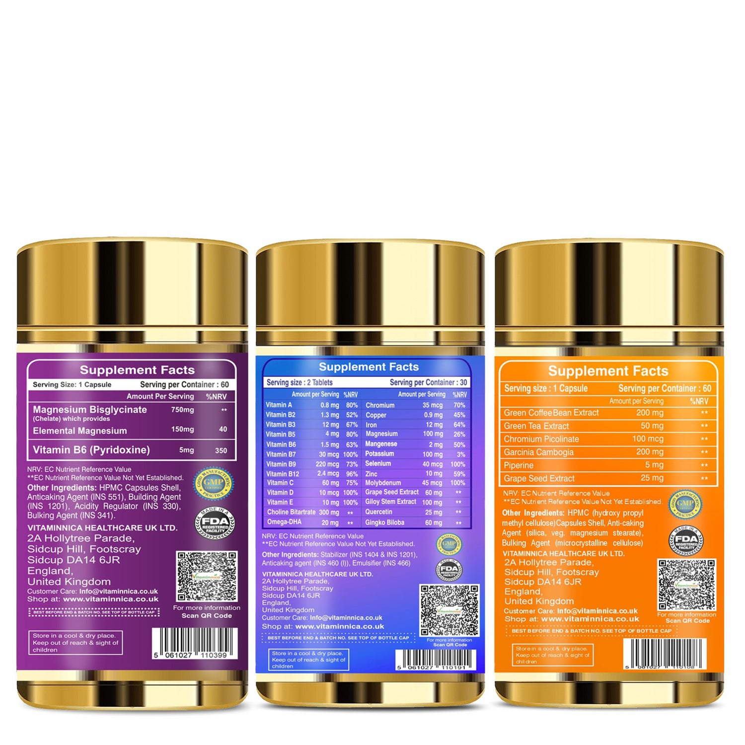Vitaminnica Magnesium Bisglycinate+ Multi Vita Men+ Keto Fat Burner- Combo Pack | 180 Capsules