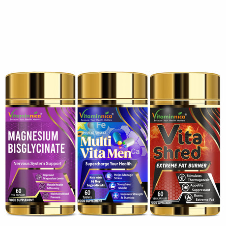 £46.50 GBP£51.75Unit price /UnavailableVitaminnica Magnesium Bisglycinate+ Multi Vita Men+ Vita Shred- Combo Pack| 180 Capsules
