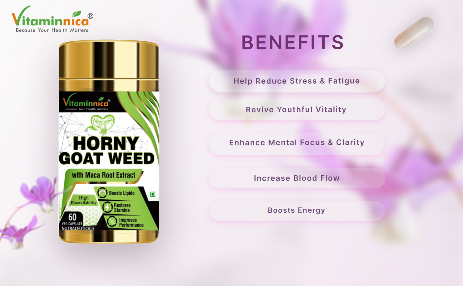 Horny Goat Weed with Maca Root Extract Supports Strength, Stamina & Performance | 60 Capsules