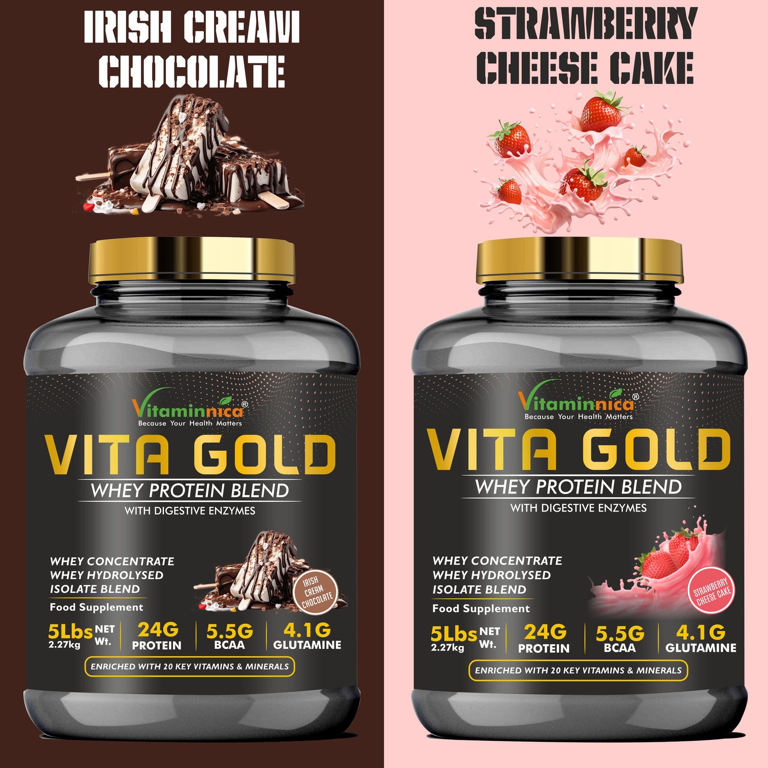 Vitaminnica Vita Gold Whey Protein Blend | Whey Concentrate, Hydrolysed, Isolate Blend | 5 Lbs- 75 Servings