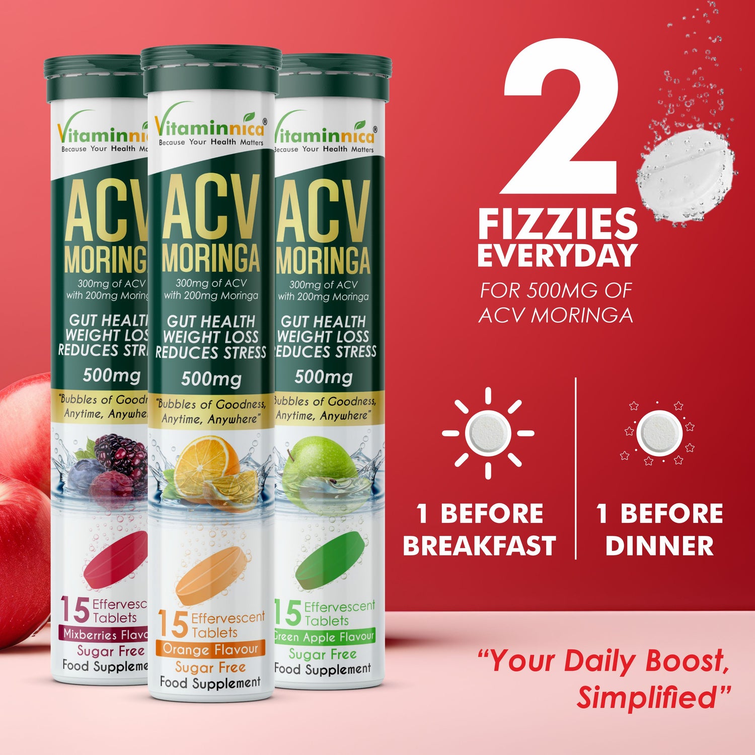 Vitaminnica ACV Moringa Effervescent- 15 Tablets | Supports Digestion, Detox & Weight Management