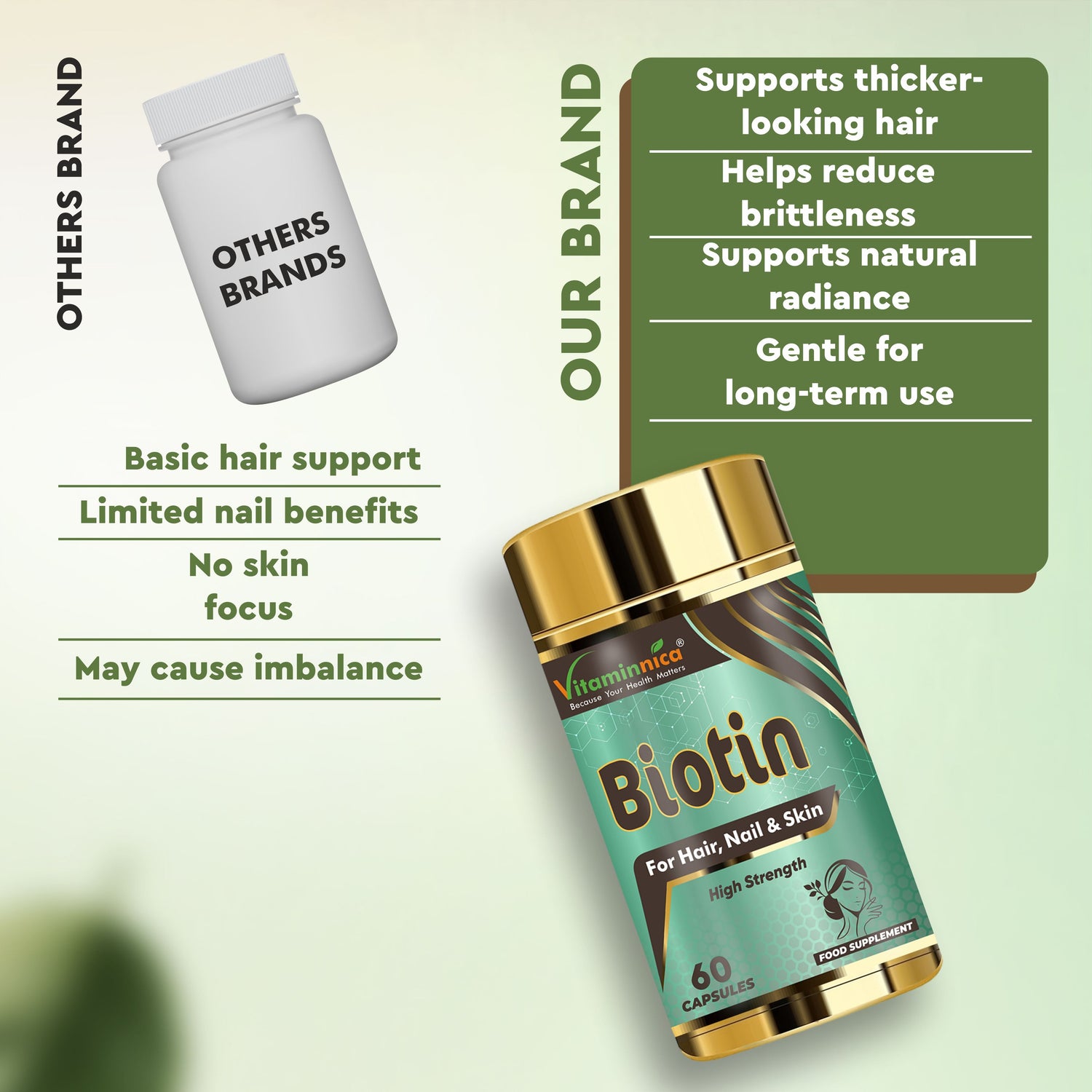 Vitaminnica Biotin – Bessere Haare, Haut und Nägel – 60 Kapseln - 1 Stück ist auf Lager und wird versandt, sobald es wieder verfügbar ist