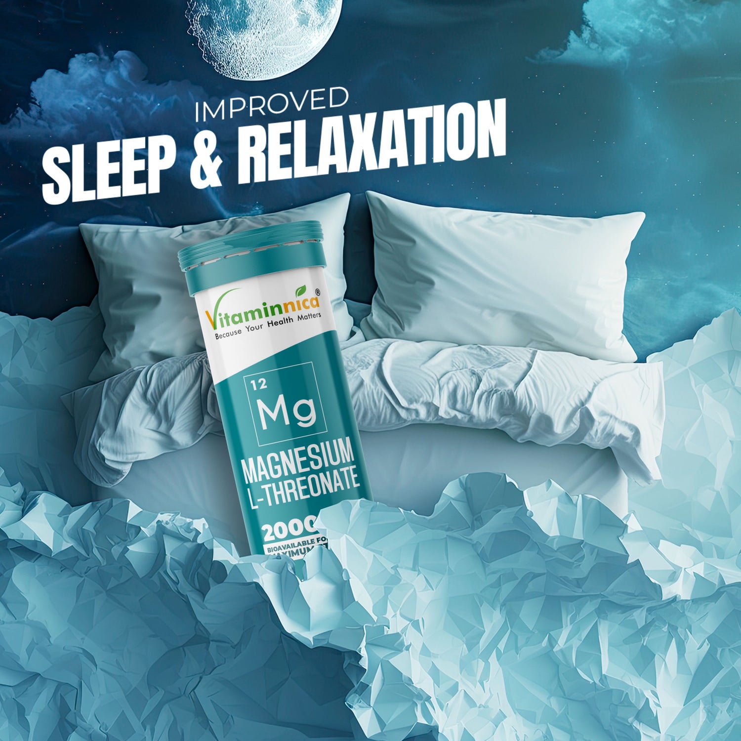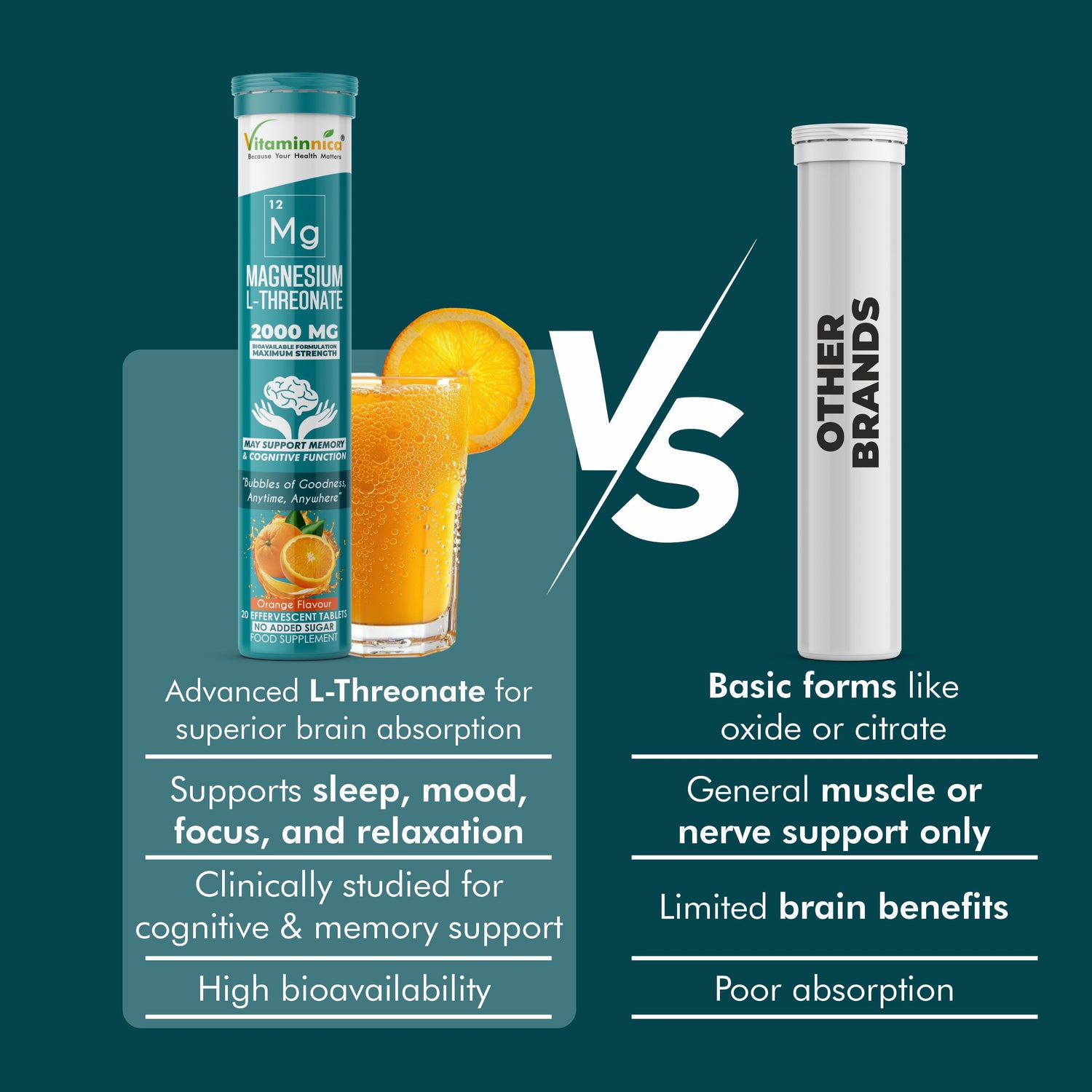 Vitaminnica Magnesium L-Threonate Effervescent Tablets Orange Flavour – Buy 2 Get 1 Free | Brain Health, Memory, Focus, Sleep & Nervous System Support | Vegan, Sugar Free