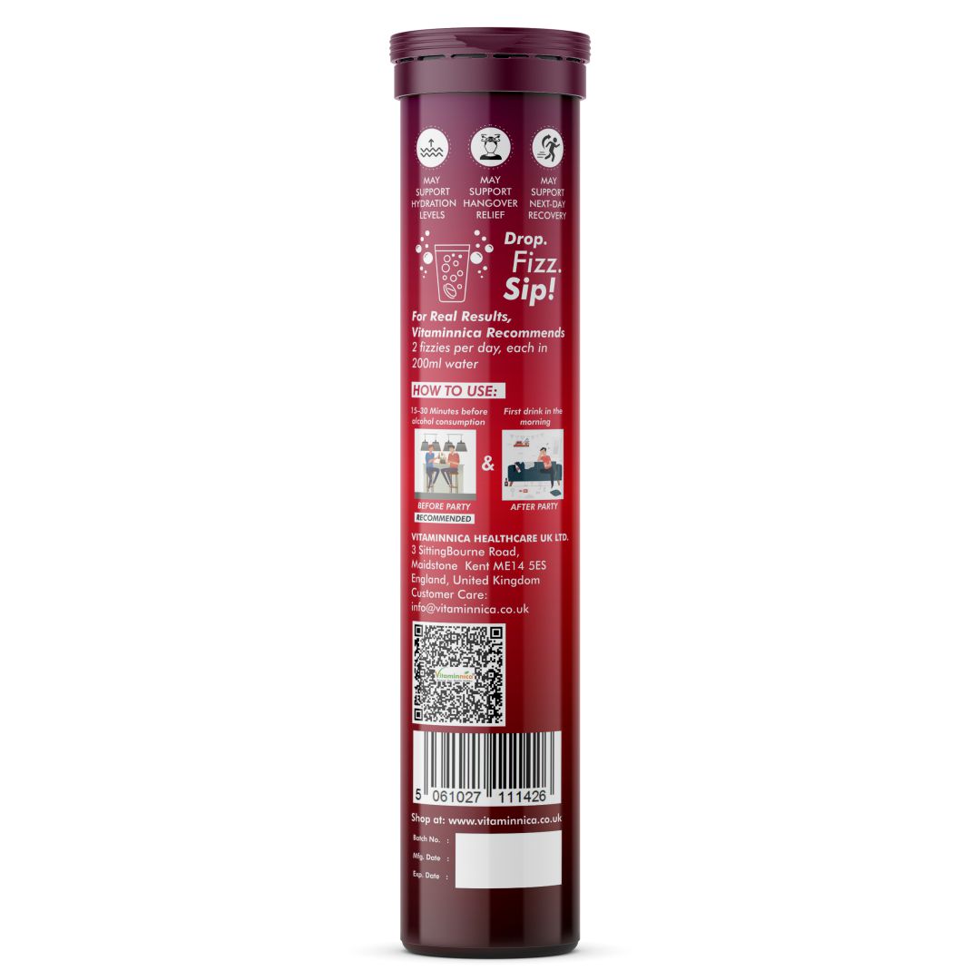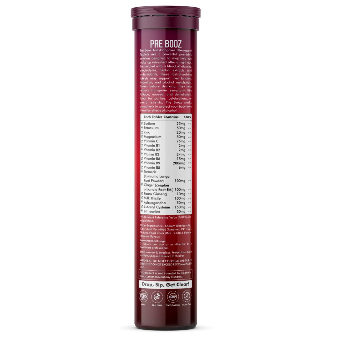 Vitaminnica Pre Booz Anti-Hangover Effervescent Tablets Orange Flavour – Buy 2 Get 1 Free | Hydration, Electrolytes, Vitamins & Liver Support | Before & After Alcohol Supplement