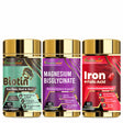 General Wellness Bundle-Vitaminnica Biotin+ Magnesium Bisglycinate+ Iron+Folic Acid- 180 Capsules