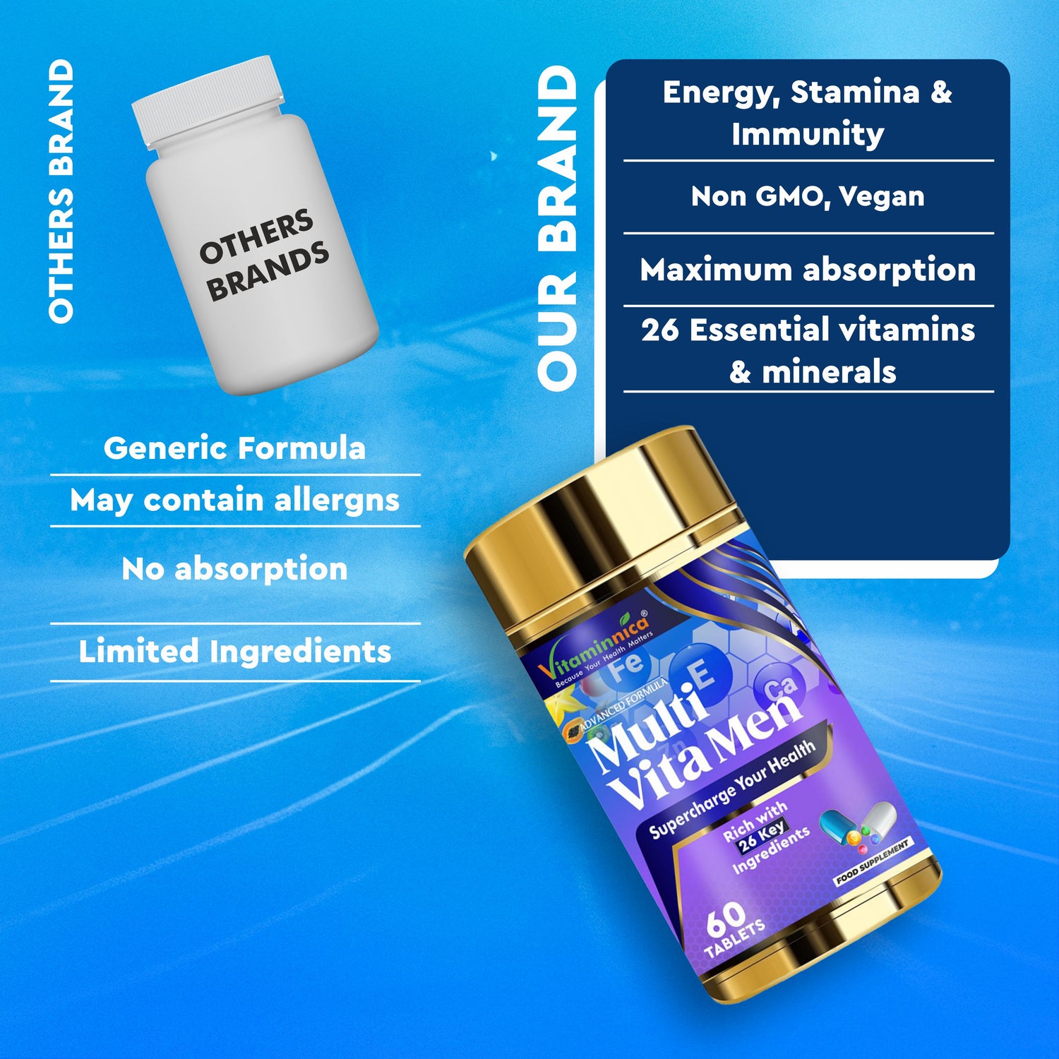 Vitaminnica Multi Vita Men (Multivitamins for Men)- Boosts Strength, Stamina & Immunity- 60 Tablets